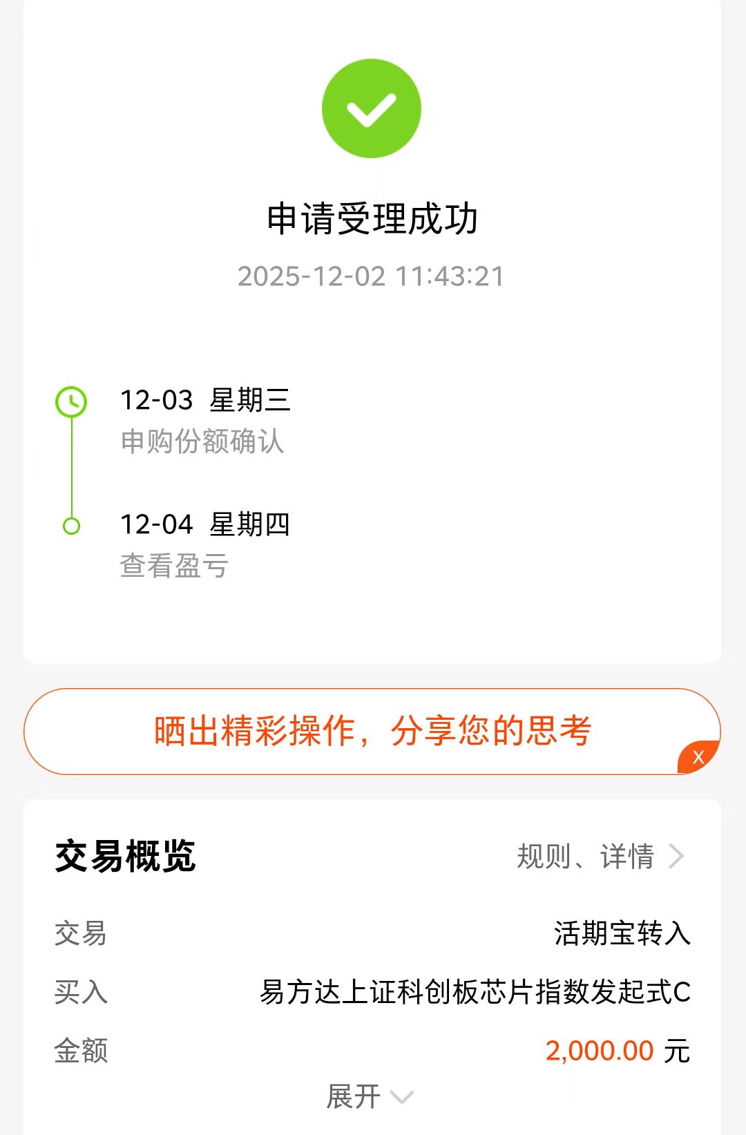 随着AI需求爆发及政策支持推动半导体芯片行业景气度上行,半导体芯片也取得了新的技术突破,国内企业在碳化硅材料,抛光液等关键领域或填补空白,海特高新建立首条6英寸化合物半导体生产线,国产设备与芯片应用落地取得实质进展,半导体芯片国产化进程又进一步,我也跟上脚步加仓易方达上证科创板芯片指数发起式C