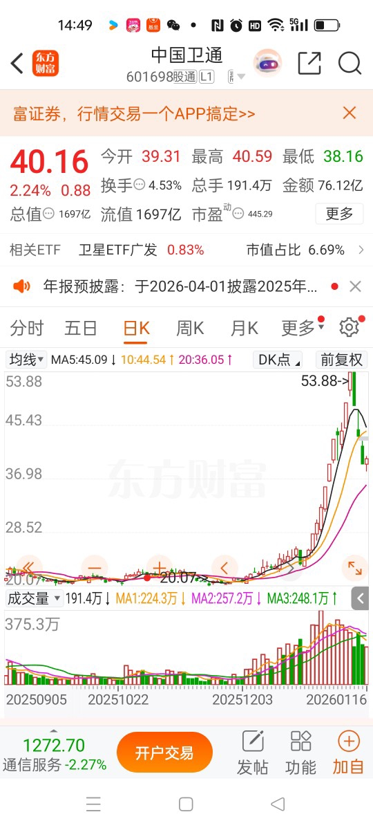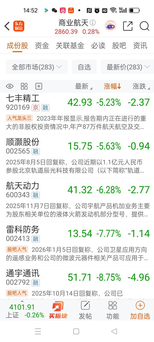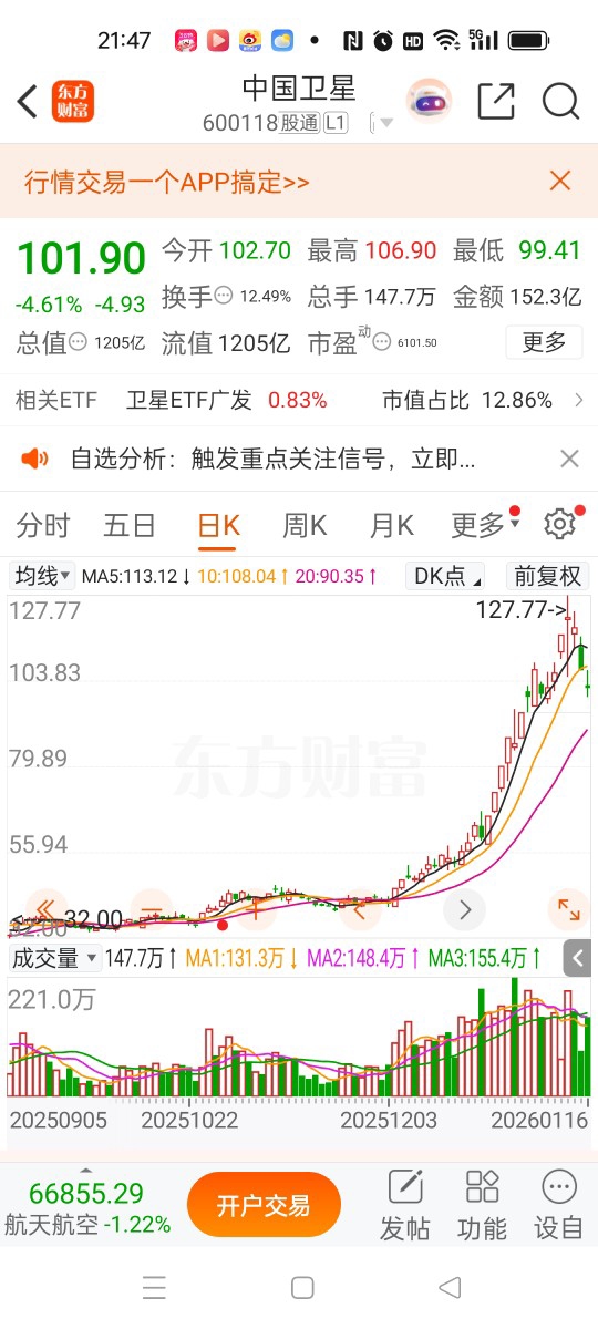 我下面发的好多个商业航天的股票,K线型态已走坏了,是降速通道了,就算盘中有反弹,还是需要高抛出来的,这个赛道要盘整一段时间了,热点在切换了,大家要多注意哦。