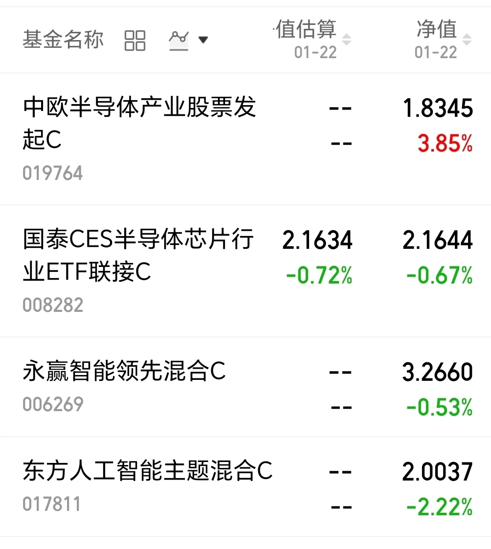 中欧半导体产业股票发起式C 今天上涨3.85%;