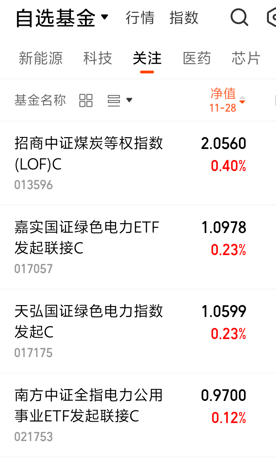 12月市场开门红,收复失地3900点,沪指盘中涨超1%,随着冬季越来越冷,煤炭和用电的需求逐渐加大,年末行情中煤炭是值得我们重点关注的,像我观察仓中的$招商中证煤炭等权指数(LOF)C$ 上个交易日上涨了0.4%,表现很不错。