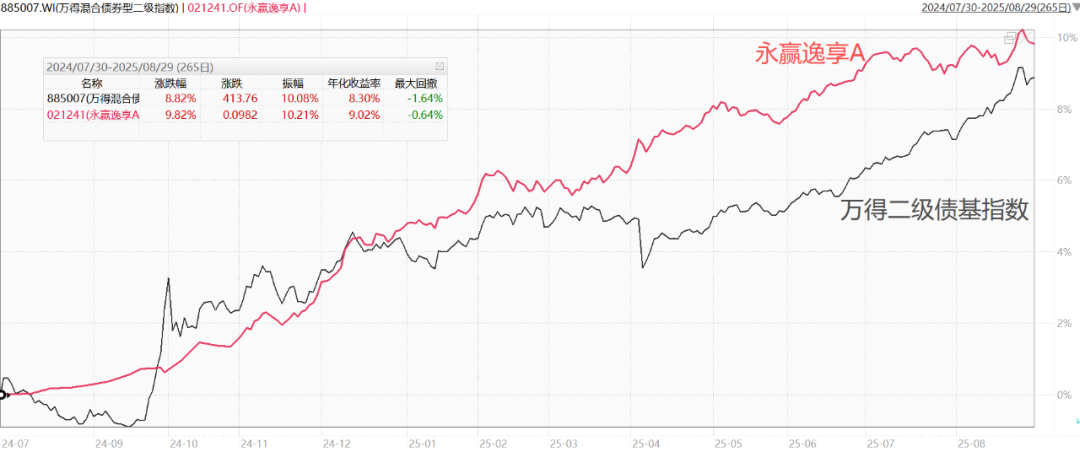 吴玮、卢丽阳共同管理的另一只基金永赢逸享,更加侧重于风险控制,定位于低波动固收+,成立至今最大回撤仅有-0.64%。(2024-07-30至2025-09-03,数据来源:Wind)