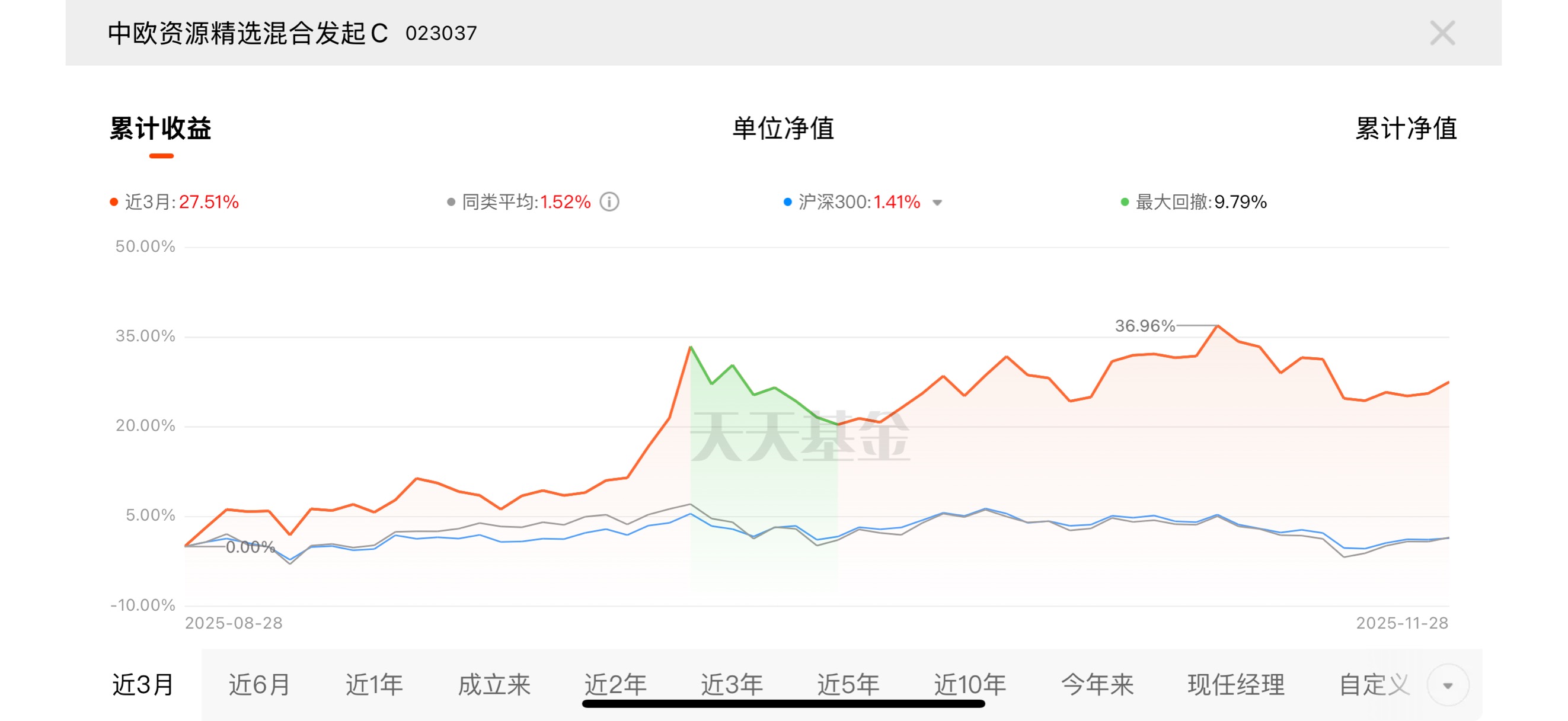 低空经济新型需求发力,稀土永磁需求长期增长,稀土价格有望稳步上行。中欧资源精选混合发起 C 近 3 个月 27.51%,布局稀有金属标的,分散风险抓机遇,行情回暖收益不落后。
