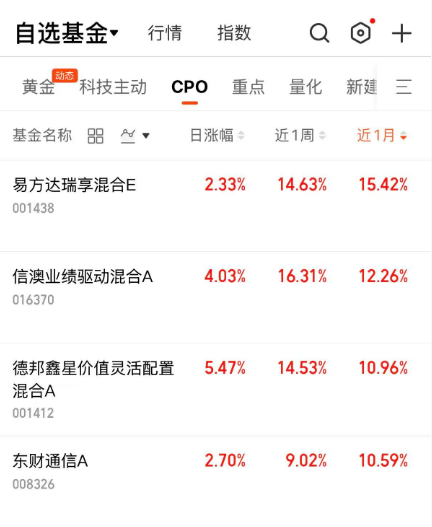 A股三大指数今日涨跌互现,科技板块内部分化,算力、AI陷入调整,唯独CPO板块逆势走强!看好这一赛道长期潜力,对比多款基金后入手$易方达瑞享混合E(OTCFUND|001438)$。不仅长期业绩亮眼(成立以来涨超 400%),基金经理更有10年投研经验,前瞻布局能力突出,交给专业人士打理也放心。