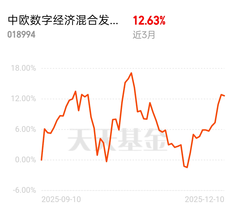 数字经济被列为国家核心战略,顶层政策持续加码,相关赛道成资金长期主线。中欧数字经济混合发起 C 近 3 个月 12.63%,背靠政策红利,长期持有不慌。