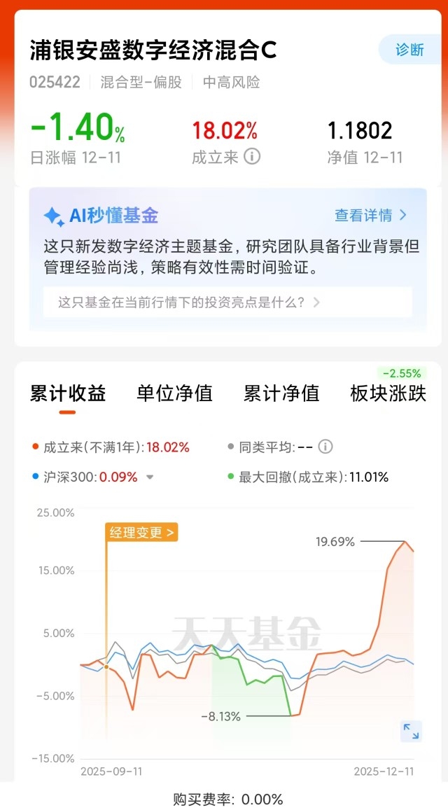#【跨年坦白局】提问金梓才、陈果# 能涨抗跌的CPO当属黑马基浦银安盛数字经济,新成立没有历史业绩负担,调仓方便,新基规模基数小,相信到年底还是最靓的仔!$浦银安盛数字经济混合C$