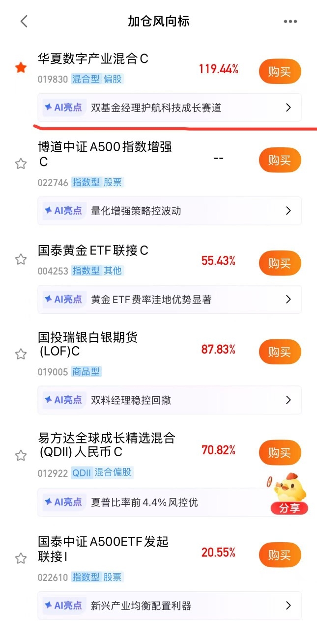太期待这基的收益了,昨天强势上涨5.71%,$华夏数字产业混合C$中长期收益喜人,最近上涨的连续性很强,优选大A和港股行业龙头,囊括了海外算力板块的优质企业,今天直接上了平台申购加仓榜,太吸金了