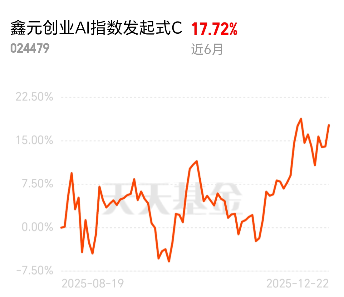 $鑫元创业AI指数发起式C$近1个月暴涨20.53%、近6个月涨17.72%,A