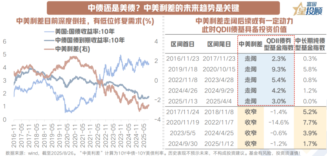 未来,随着美国在关税困扰中需求端进一步走弱+财货协同宽松诉求加强,这一现象或有望得到纠偏,中美利差走阔后续或有一定动力,此时QDII债基投资价值将较为突出。
