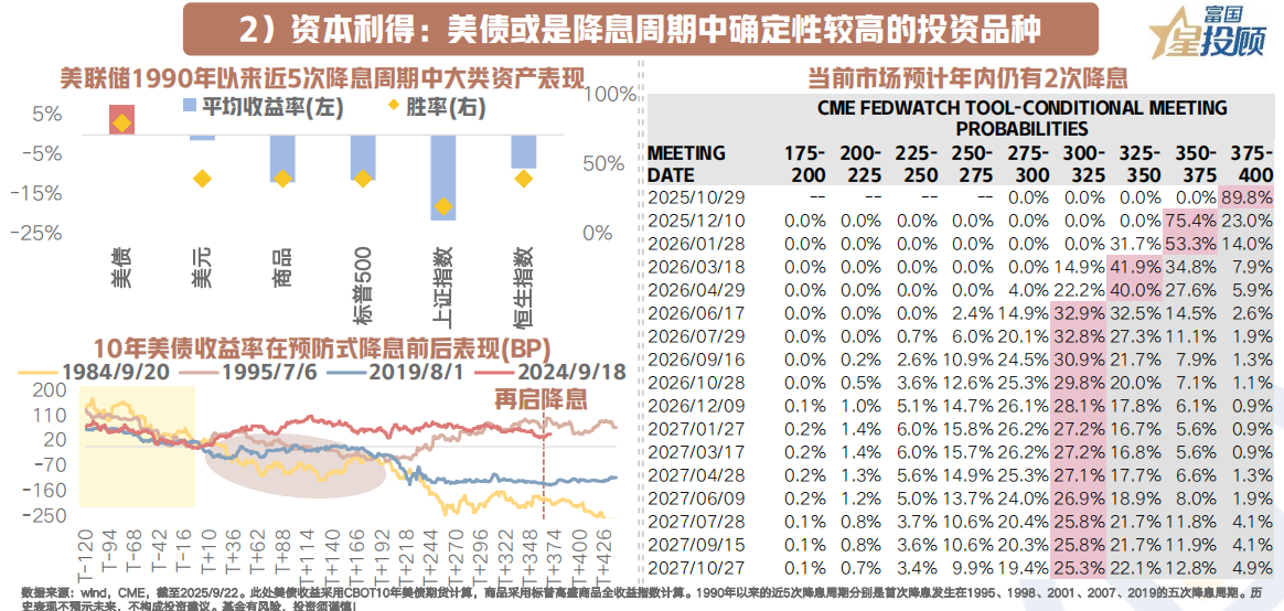 2)资本利得:美债或是降息周期中确定性较高的投资品种