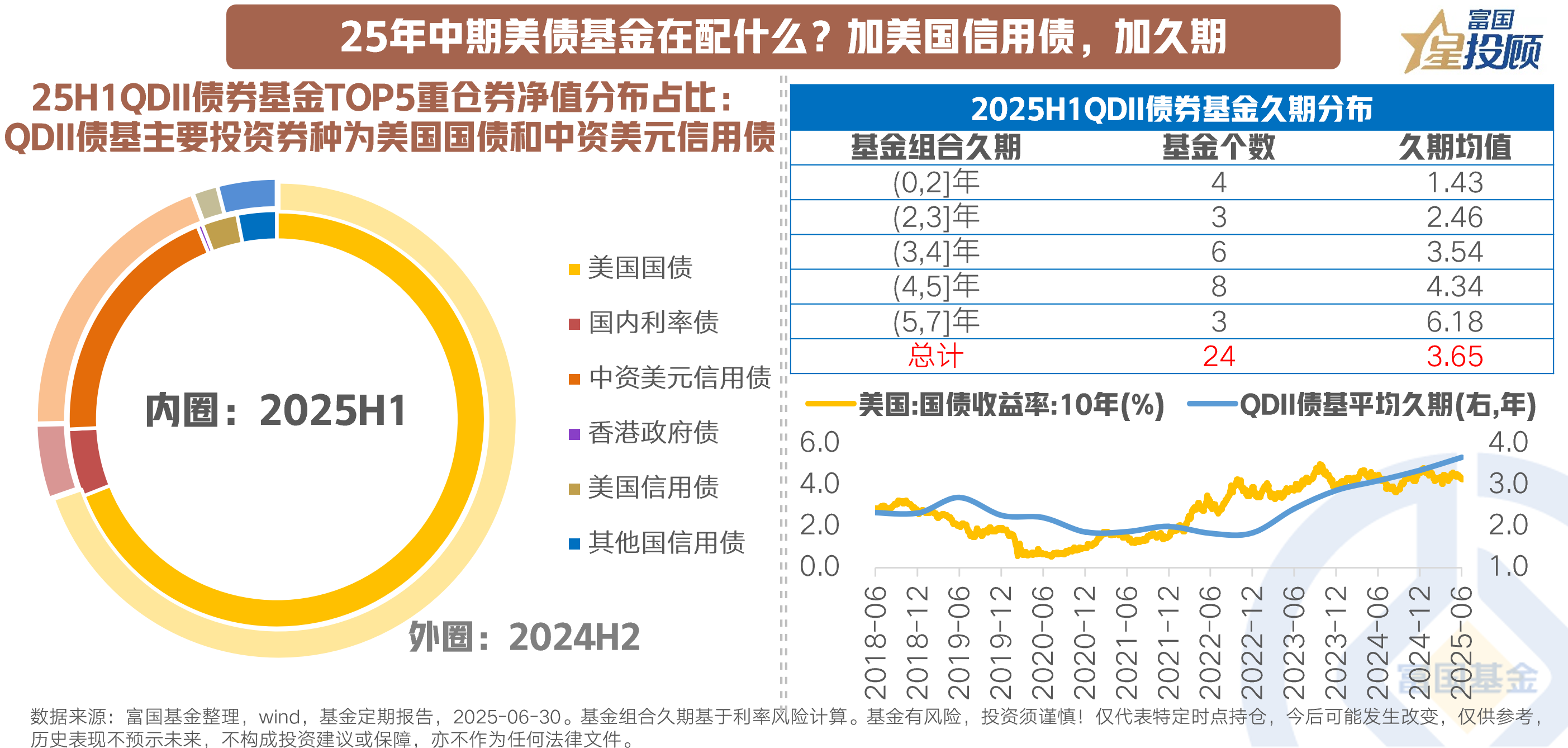 久期方面,QDII债基平均久期进一步抬升;结构上,4年以上的中长久期投资品种数量占比近半成。