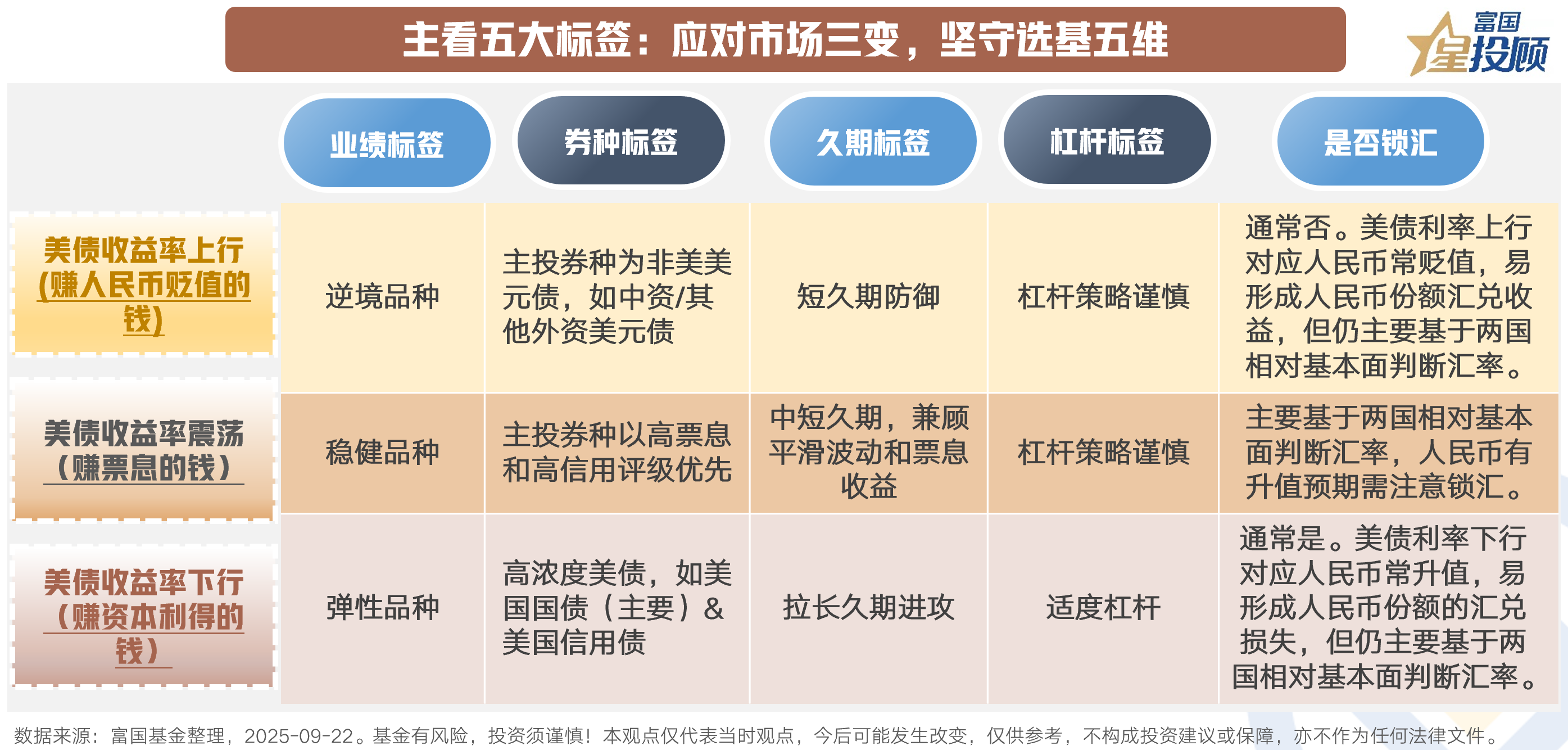 面对不同的美债收益率环境,五大标签并非孤立决策,而是一个相互协同的体系以实现攻守兼备的配置目标:利率维度定方向,券种维度决结构,久期维度控弹性,汇率维度谋对冲,杠杆维度搏增强。