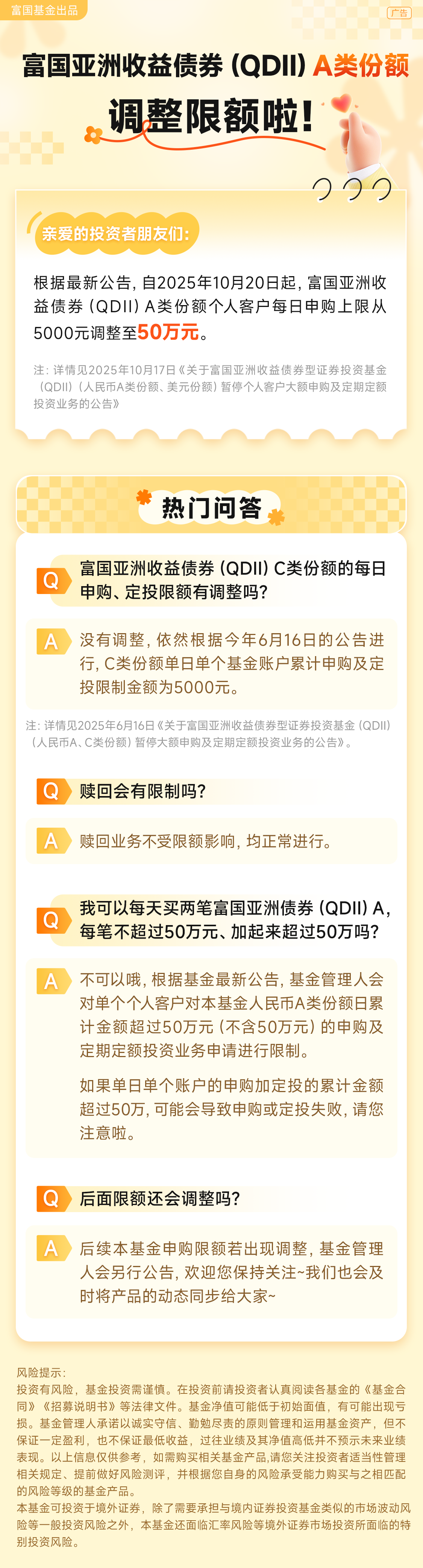 富国亚洲收益债券(QDII) A类份额调整限额啦!