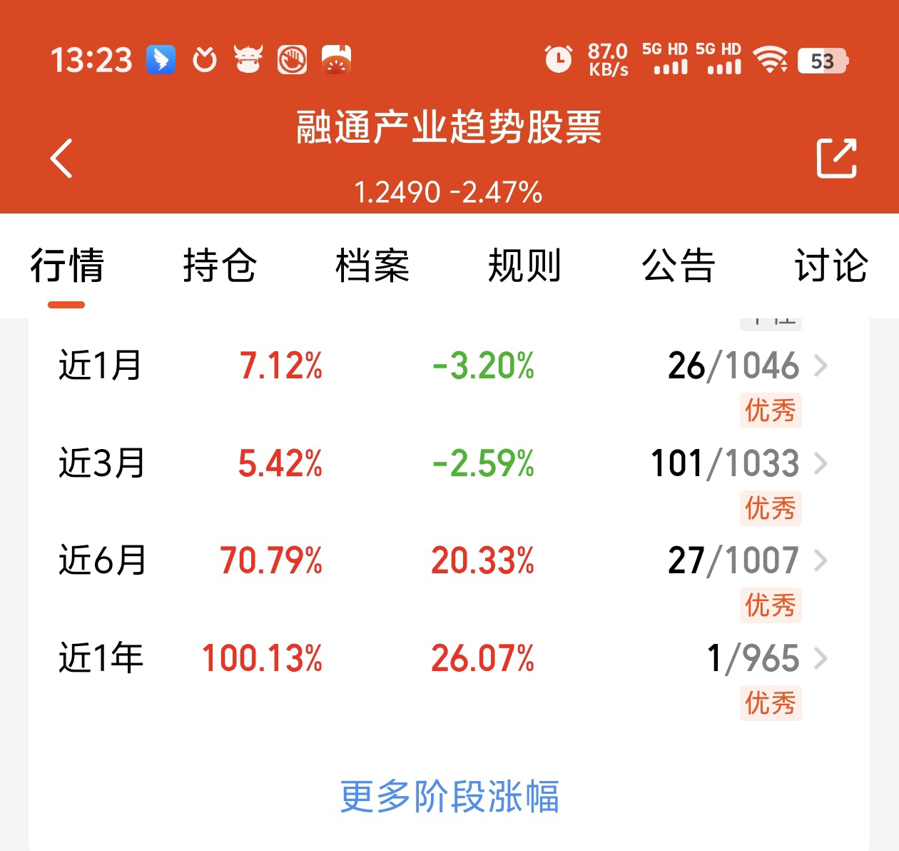 行情回暖,A股三大指数上涨。今天我也是加仓了$融通产业趋势股票$ +5000元。基金目前估值上涨了2.95%,应该是重仓算力了,今晚吃大肉。基金近期表现的也是非常的优秀,近一个月上涨了7.12%,近一年的收益率高达100.13%,盈利能力强,是一支主动型布局科技行业的基金,具有超额收益。目前AI算力需求爆发,CPO技术迭代+政策加持等构成核心驱动力。国内CPO产业链全产业协同+国产替代红利,将释放行业成长潜力,相关企业营收、净利润大幅增长。市场在经历了短暂的调整大量的资金,将逐步的回暖上涨,大量的已经顺周期流入CPO板块,将迎来新一轮的上行周期。长期持有,投资回报率高,期待后期收益。