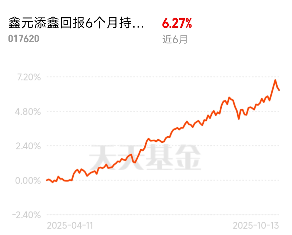 今天盘面稳得很,适合拿住优质标的不动摇。鑫元添鑫回报6个月持有期混合C近6个月有6.27%的收益,这种时候持仓待涨,收益才能稳稳落袋。