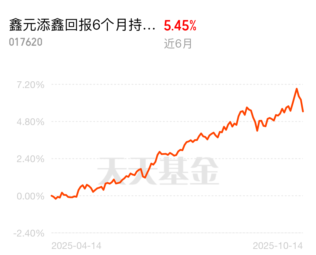现在资金面宽松预期强,债市行情有支撑,稳健理财可以重点看。鑫元添鑫回报6个月持有
