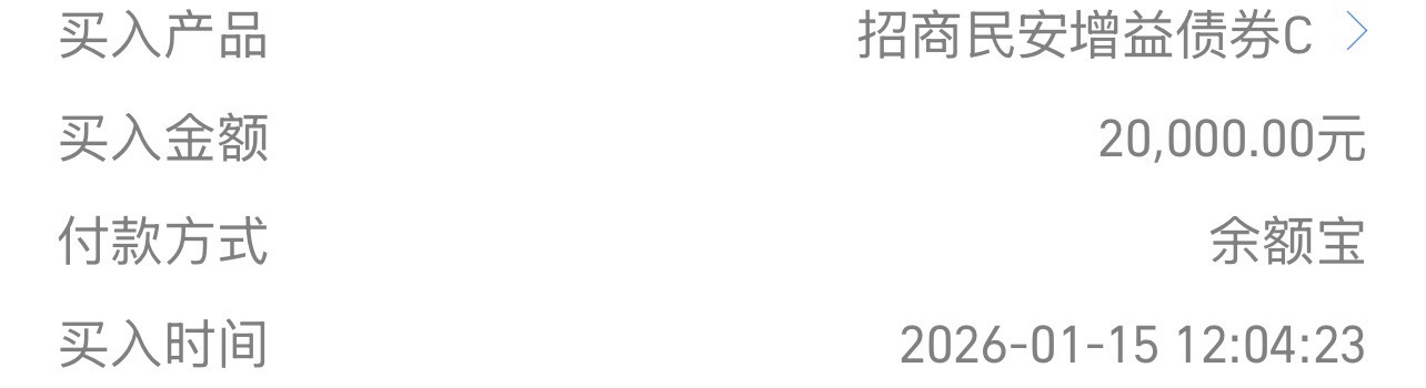 $招商民安增益债券C$ 加仓20000元