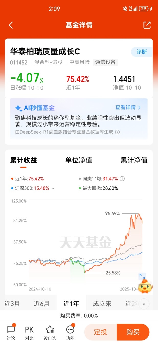 特朗普的新关税政策,本质上是给全球科技产业链扔了一颗“震荡弹”。对AI产业来说,那些依赖海外算力硬件、芯片的环节可能会短期承压,但这恰恰是基金布局的优势所在——它能通过组合投资,既保留对AI核心赛道(比如大模型、国产AI芯片、端侧应用)的 exposure,又能规避单一标的因关税冲击带来的极端风险。就像华泰柏瑞质量成长,它的持仓覆盖了AI产业链从算力到应用的关键环节,还能在关税带来的市场波动中,灵活调整仓位和标的,这比我们散户自己选股踩点要靠谱得多。