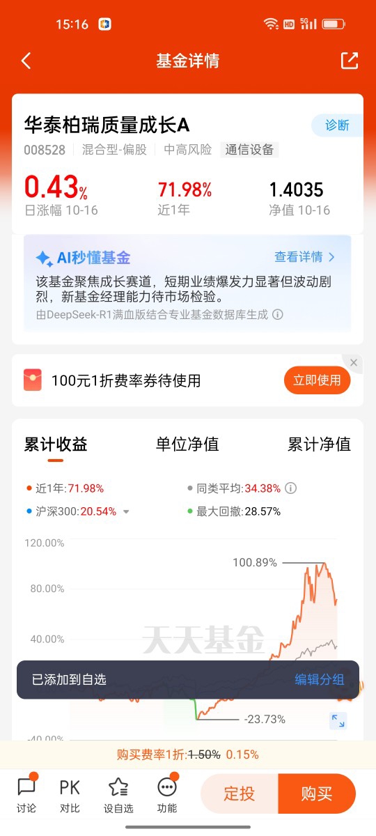 聊完布局策略与工具选择,我想说说投资中最容易被忽视,但却最关键的“心态问题”。很多投资者看到AI板块涨得快,就忍不住追高;看到短期回撤,又恐慌性割肉,但从华泰柏瑞质量成长基金的业绩来看,近一年61.52%的收益,不是靠“精准择时”,而是靠“长期持有+分散布局”。比如2025年5月,AI板块因市场情绪低迷回撤20%,很多投资者纷纷赎回基金,但如果选择继续持有,甚至通过定投加仓,只要产业的长期成长逻辑没有变,优质标的迟早会回归价值。最终,这波回撤后,基金只用了3个月时间就收复失地,还创下了净值新高。