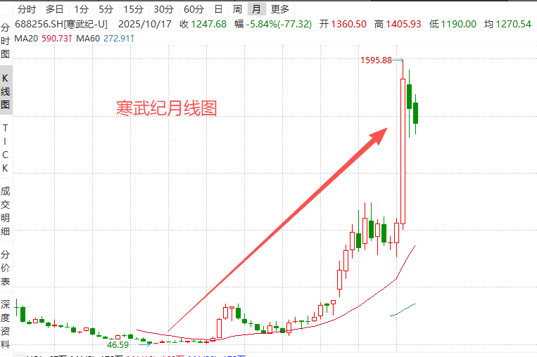 典型如美国的英伟达,2022年10月底点至今,3年左右累计上涨了近16倍;A股的寒武纪自2022年4月低点至今,3年半左右累计上涨了近26倍!