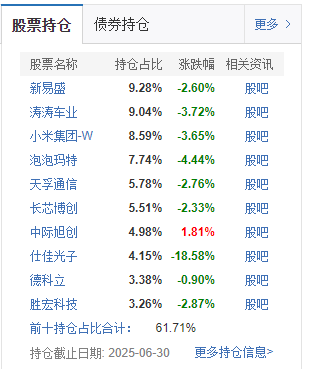 当前陈文凯除了重点投资中美AI产业链外,还布局了轻工品牌出海、高端制造、新消费等领域,2025年二季报显示的重仓股如下: