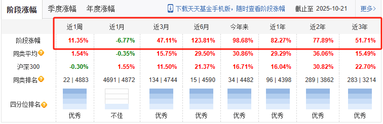 从基本面看,这只基金的持仓太 “对味” 了。陈经理说选行业要找 “3-5 年能稳涨、处于生命周期早期的”,这只基金近 6 个月收益率 123.81%(截至 2025 年 10 月 22 日)。