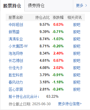 前十大重仓股里,光模块龙头中际旭创(持仓 9.57%)、新易盛(持仓 9.39%)占了近 20%—— 这两家公司我特意查了,海外订单都排到明年二季度,正好对应陈经理说的 “有真实需求支撑”。还有涛涛车业(持仓 8.74%),它的电动滑板车在欧洲超市卖断货,半年报净利润涨了 120%,这也是陈经理提到的 “高端制造出海” 方向。整个持仓没有 “蹭热点” 的股,全是有业绩、有订单的公司,这点特别合我心意。