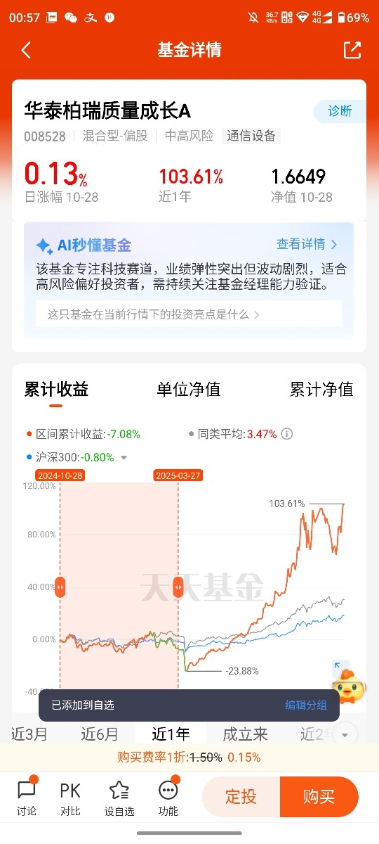 有人可能会问,为啥不直接买AI主题基金?其实我试过,那些基金持仓太集中,一旦板块回调跌得特别狠。华泰柏瑞质量成长A的优势在于“均衡里抓重点”,它不把所有钱都砸在AI上,还配了一些消费、医药等稳健板块,就像给投资加了个“缓冲垫”。比如前段时间AI回调,这只基金虽然也跌,但比纯AI基金抗跌不少,让我能沉住气长期持有。