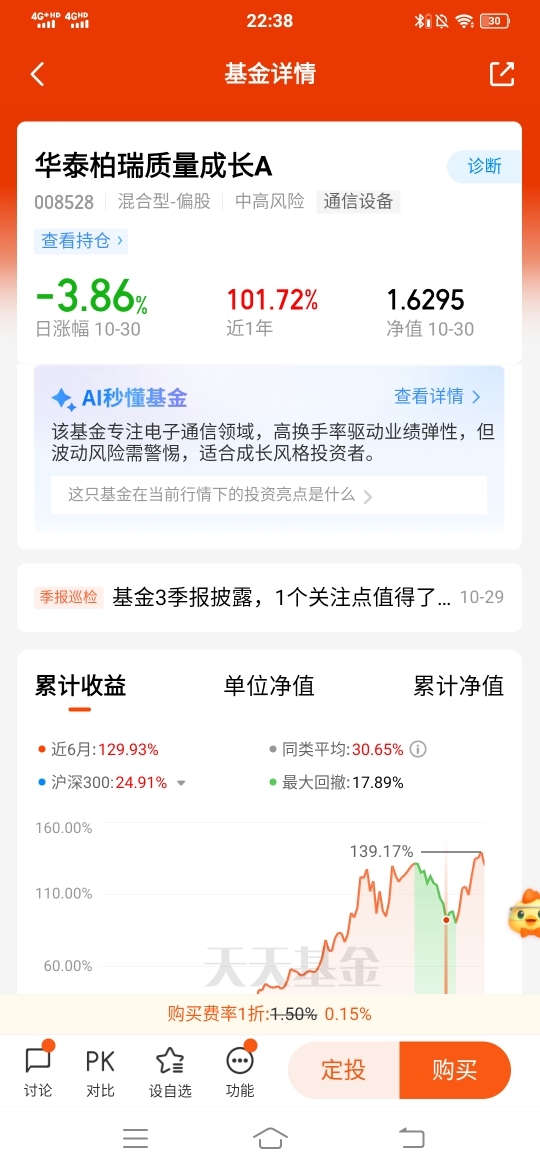 风险控制措施:基金通过分散持仓(覆盖通信、电子、消费等行业)和股指期货对冲,将2024年最大回撤控制在20%以内,优于同类基金平均28%的水平。