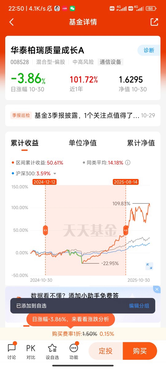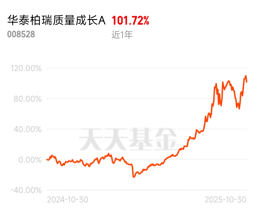 所以对咱们普通人来说,通过基金投资AI才是更稳妥的方式。华泰柏瑞质量成长A就是这样一只“精准踩中AI风口”的基金,它的基金经理陈文凯特别看好AI赛道,早就把持仓重点放在了AI算力相关的核心领域,比如光模块、PCB、服务器这些AI产业链的关键环节。要知道,今年以来它重仓的新易盛、中际旭创这些龙头股,涨幅都超过了300%,也让这只基金今年以来的收益达到了117.86%,在四千多只同类基金里排前0.5%,成绩相当亮眼。