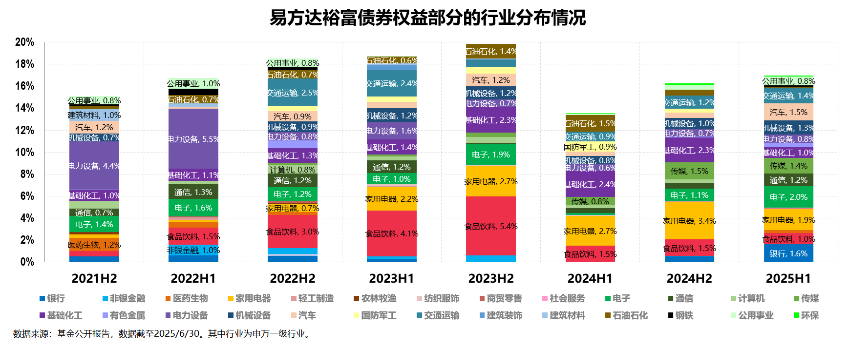 优秀的业绩自有其内在的驱动因素,接下去我们就基于易方达裕富债券的历史持仓数据对其做些简单的分析和回顾,以探究其何以能获得这样的好业绩。