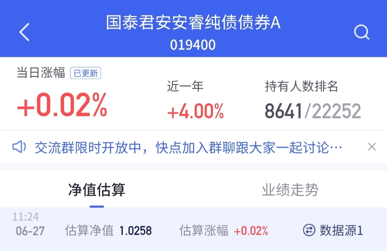 今日债市整体表现平淡,国债收益率小幅上行,信用债交投清淡。受A股尾盘跳水影响,二级债基普遍出现0.03%-0.08%的回撤,部分含权产品碎蛋明显。建议持有中短债基的投资者保持耐心,静待资金面改善。$国泰君安安睿纯债债券A$ 今晚收2蛋$永赢邦利债券A$ 今晚碎1蛋$华宝政金债债券A$ 今晚碎1蛋