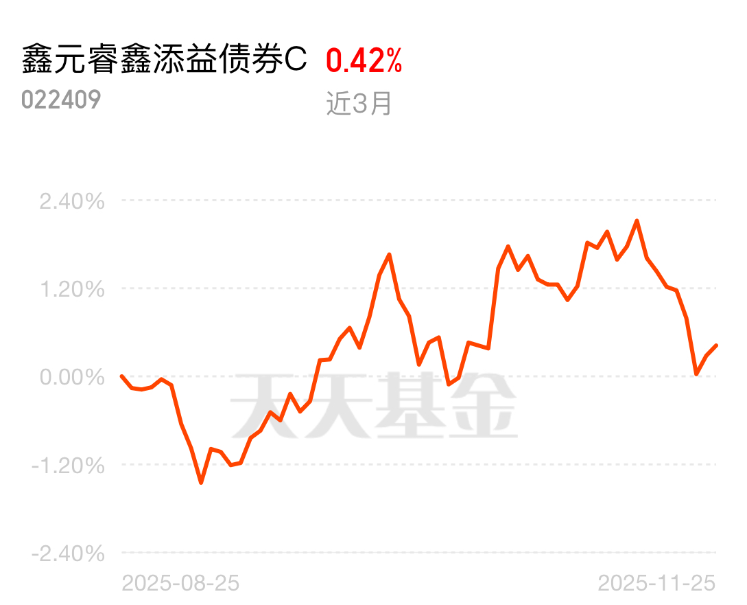 股债跷跷板效应下,近期债券资产成了资产配置的压舱石。鑫元睿鑫添益债券C表现稳健,近3个月收益0.42%,能帮着平衡整体风险,让投资组合更稳妥。$鑫元睿鑫添益债券C$