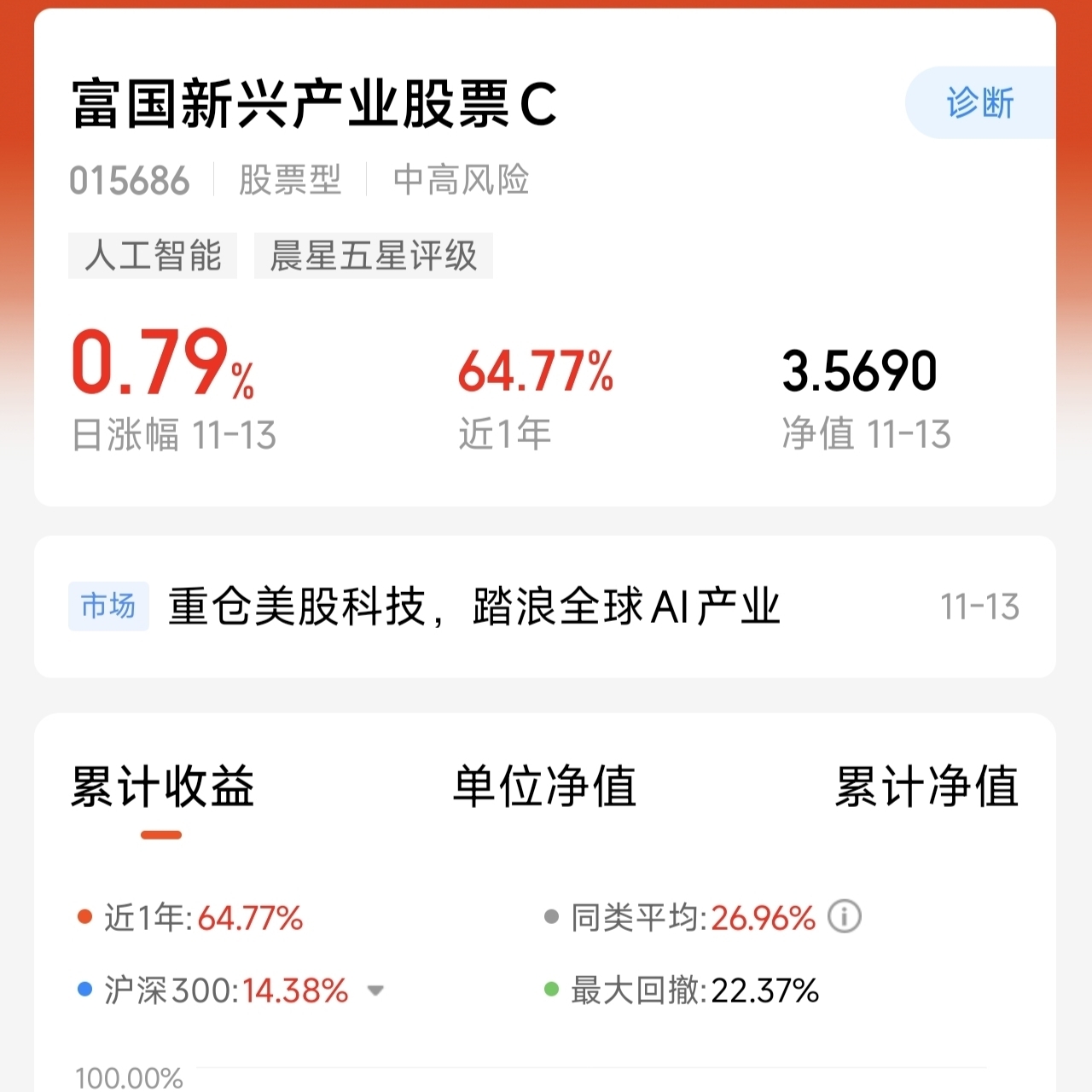 配了华夏人工智能ETF,又加了富国新兴产业C它布局中际旭创、新易盛这些AI算力龙头,近一年涨67%,超越同类不少。