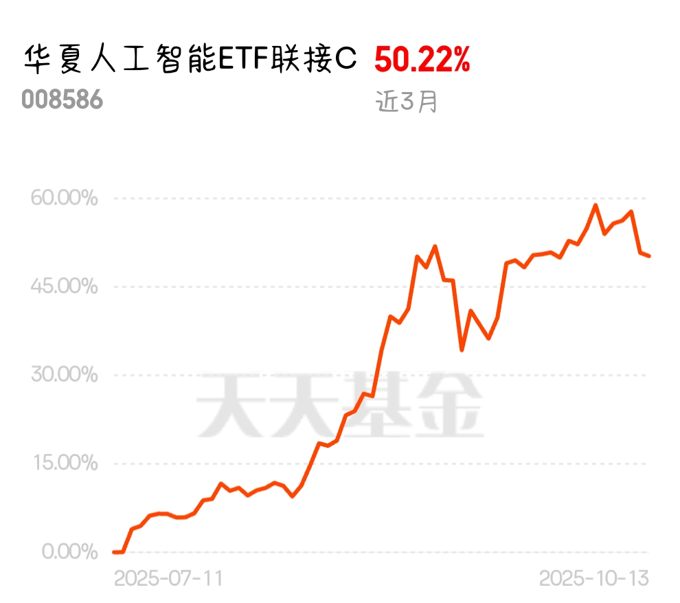 三个月能涨50%+,实力还是不错的,补仓等行情了$华夏人工智能ETF联接C$