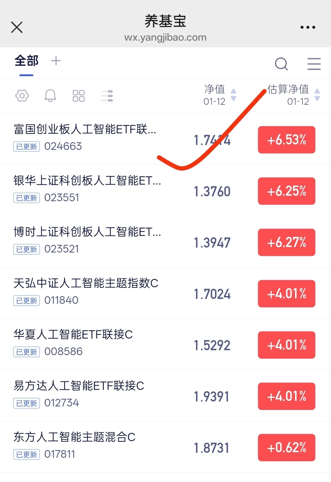 AI行情火力全开!$富国创业板人工智能ETF发起式联接C$今日再涨6%,开年斩获