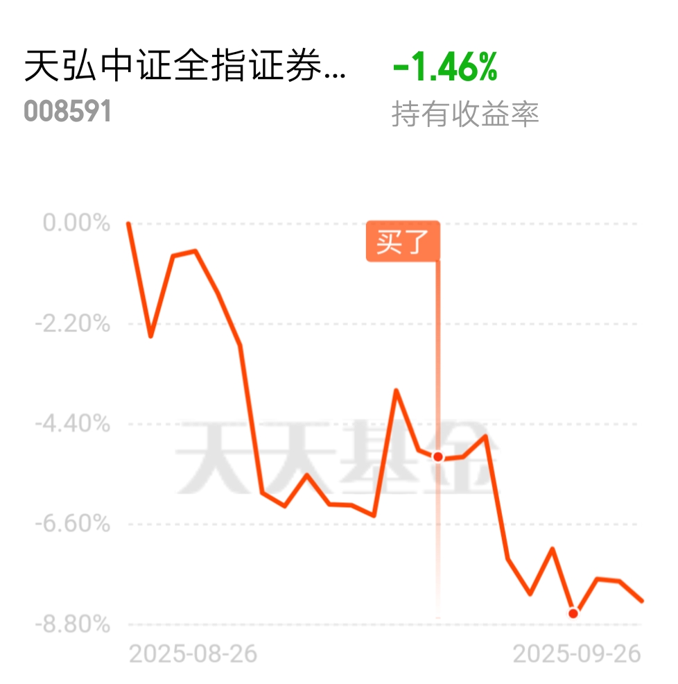 红了又绿了今天再次红了(目前看),真纠结呀,耐心等涨吧$天弘中证全指证券公司ETF联接C$