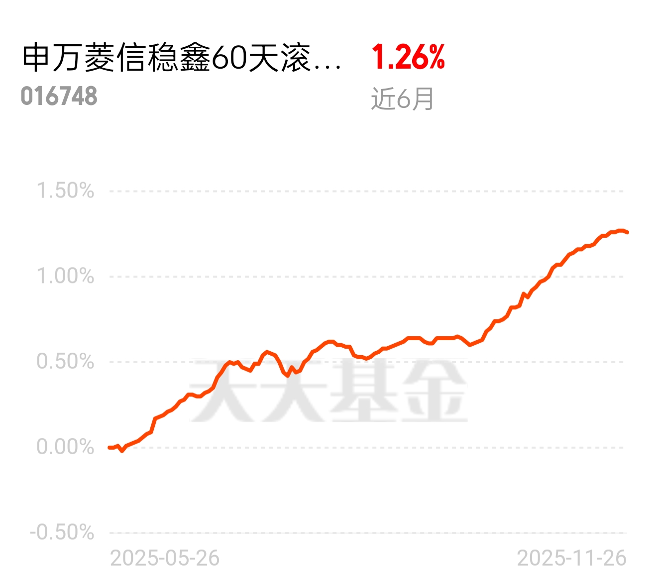低利率时代,想让闲钱不贬值又不想担风险,选对产品很重要,申万菱信稳鑫60天滚动持有中短债债券A近6个月收益1.26%,稳健理财不折腾,收益稳稳拿。