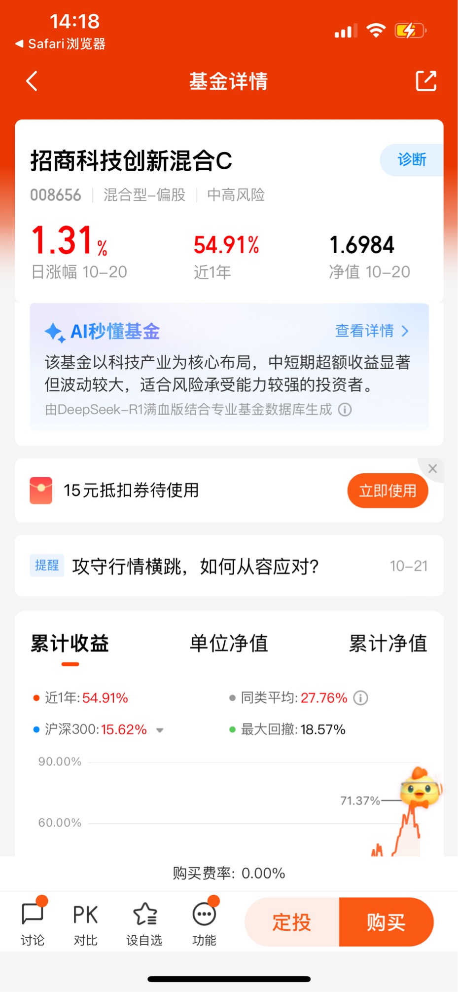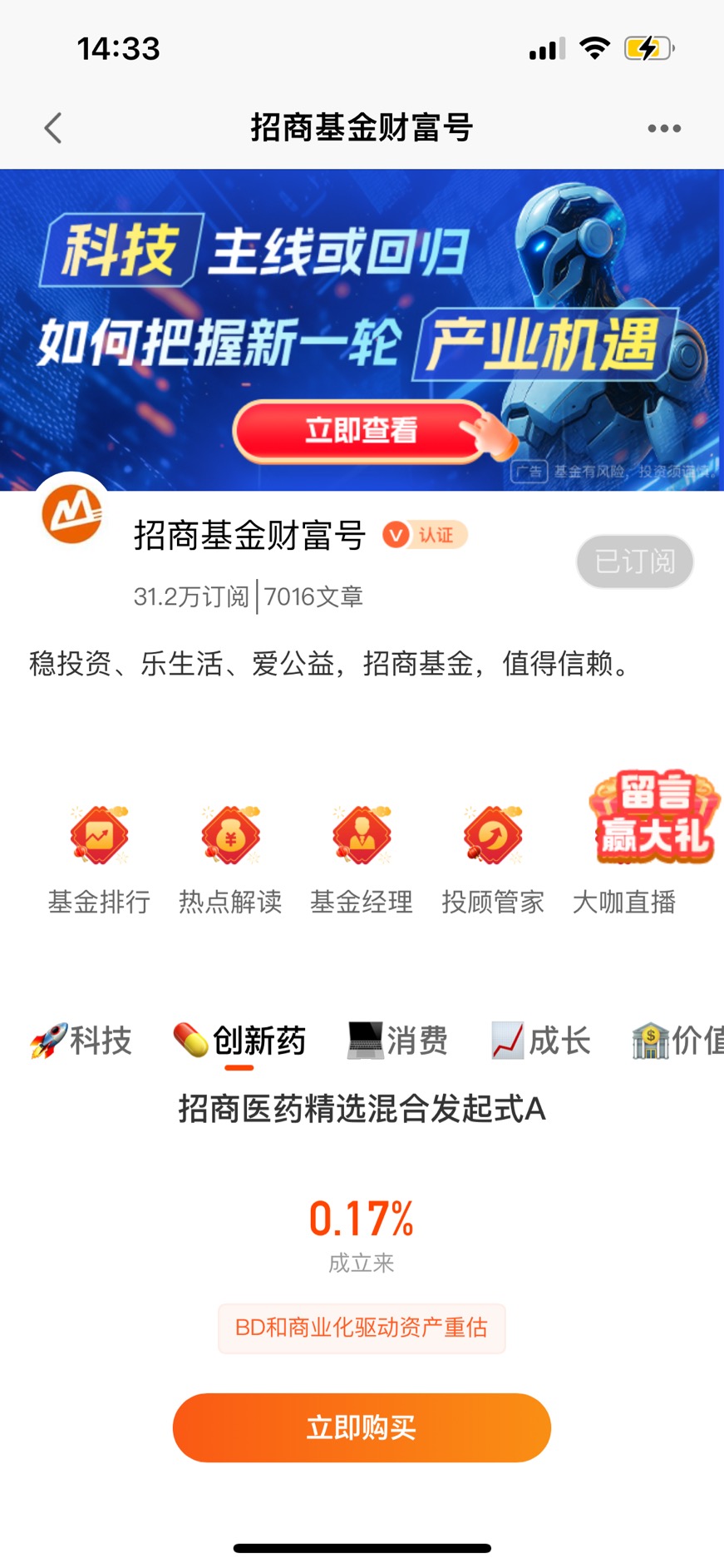 总之,招商科技创新混合A是一只值得科技投资爱好者重点关注的基金,它就像一艘在科技浪潮中航行的先锋战舰,既有乘风破浪的勇气,也有精准导航的智慧,有望在未来的科技投资征程中继续书写辉煌。我看好招商基金公司,对招商科技创新混合A基金更是信心满满,作为招商基金的持有者和忠实粉丝,我愿意把这款宝藏基金推荐给大家,感兴趣的小伙伴们可以重点关注一下,确实不错,良心推荐!!!