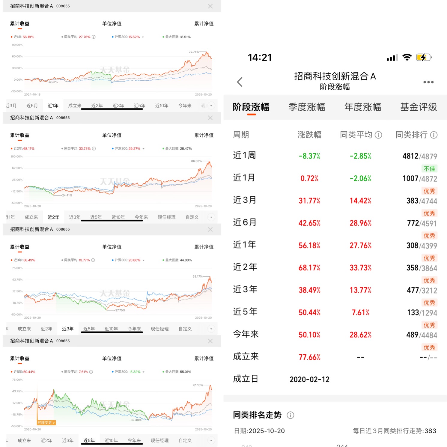 那么,作为一个普通投资者,该如何去布局大科技板块呢?在这里,我向您推荐招商科技创新混合A基金,真正实现一键布局,真正帮您轻松投资。当科技创新成为时代发展的最强音,当A股科技板块在2025年演绎出波澜壮阔的行情,招商科技创新混合A(008655)这只基金如同一位经验丰富的船长,在科技投资的浩瀚海洋中乘风破浪,交出了一份令人瞩目的答卷。接下来,我将从九个维度,全方位、深层次地剖析这只基金,探寻它在科技投资领域的独特魅力与潜在风险。