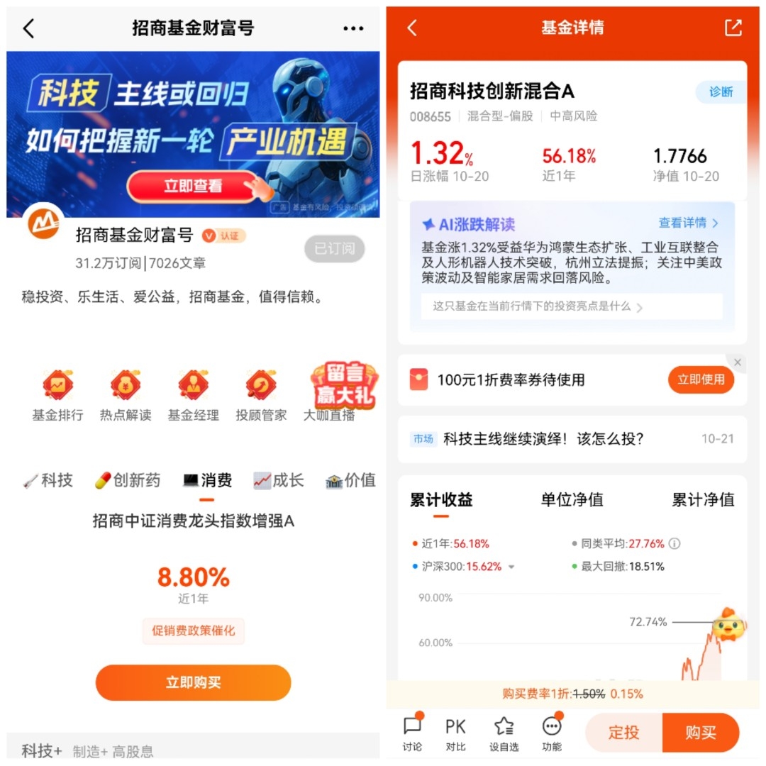 此外,对于普通投资者而言,基金还具备门槛适配与成本优势。作为场外混合型基金,投资者无需开通股票账户,通过银行、第三方平台即可轻松申购,有效解决了中小投资者参与硬科技投资“选股难”“开户繁”的痛点。同时,依托招商基金的规模效应与管理效率,基金在费用控制上具备优势,能够降低长期投资成本,将更多收益留存给投资者。整体而言,招商科技创新混合A凭借清晰的战略定位、强大的投研支撑、严密的风险管控与突出的业绩表现,成为普通投资者分享AI科技革命与国产替代红利的优质工具。$招商科技创新混合A$ @招商基金