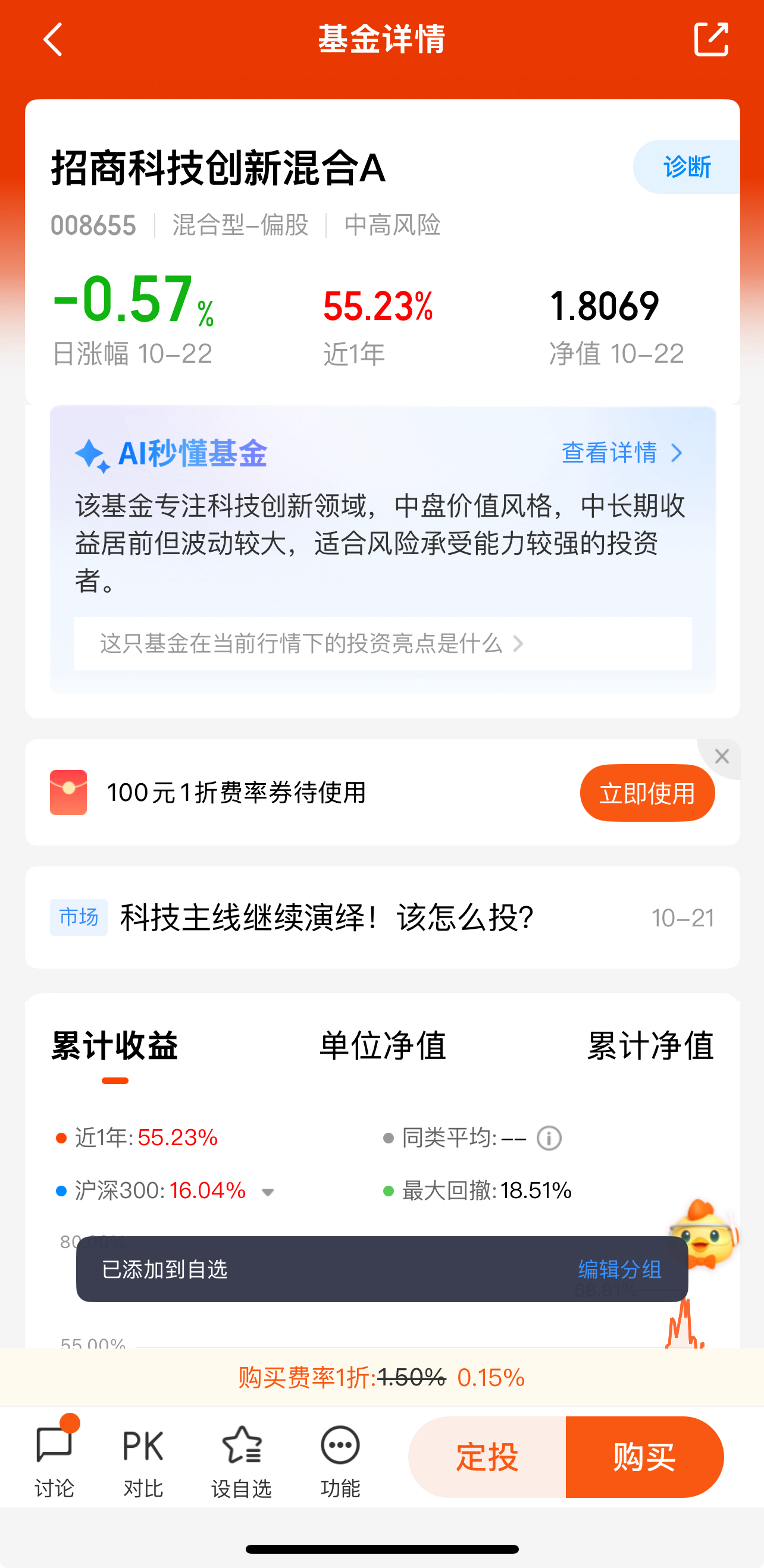 骑牛看熊比较看好招商科技创新混合A(008655)的投资优势,原因如下: