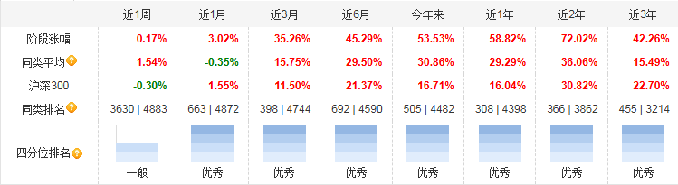 从收益排名来看,它还是比较不错的。近1月收益3.02%;近3月收益35.26%;近6月收益45.29%;近1年收益58.82%;近2年收益72.02%;近3年收益42.26%;近5年收益56.4%;近年来收益达到了53.53%。从2020年2月12日成立来,收益达到了81.72%。其基金业绩表现(即风险调整后收益)在同类型基金中排名靠前。