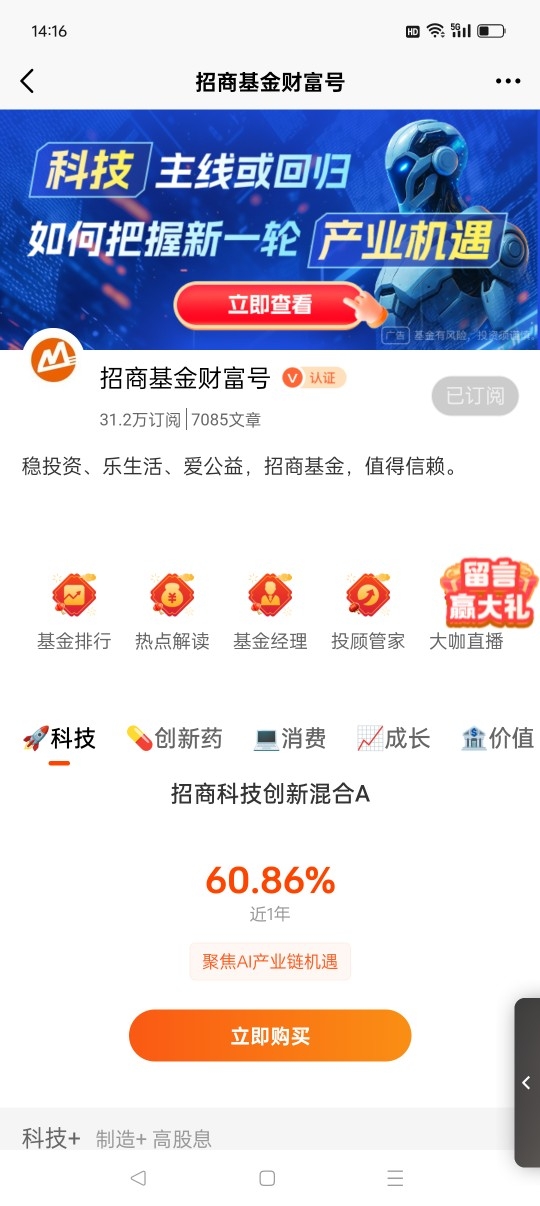 $招商科技创新混合A$聚焦科技赛道优质公司,近一年收益率60.86%(同类基金平