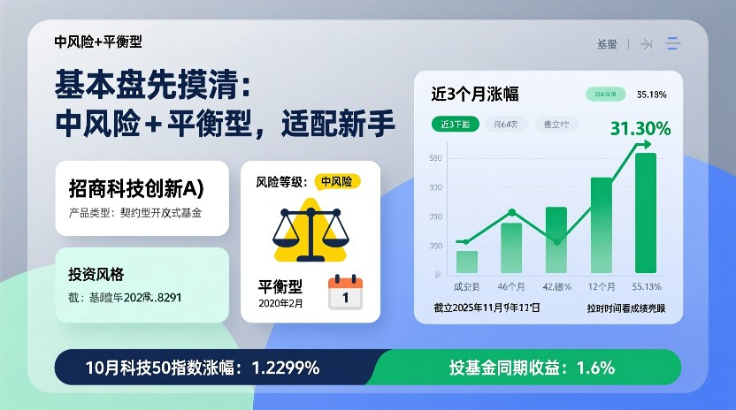 一开始选基金时,我最怕踩雷“高波动妖基”,毕竟刚毕业输不起。招商科技创新A的定位让我放心不少:中风险+契约型开放式+平衡型投资风格,成立于2020年2月,不算新基金但也不算老古董,经历过市场周期检验。