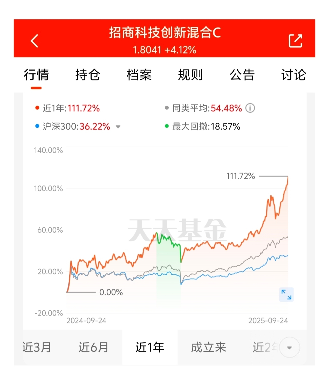 $招商科技创新混合C$ 近一年收益超110%