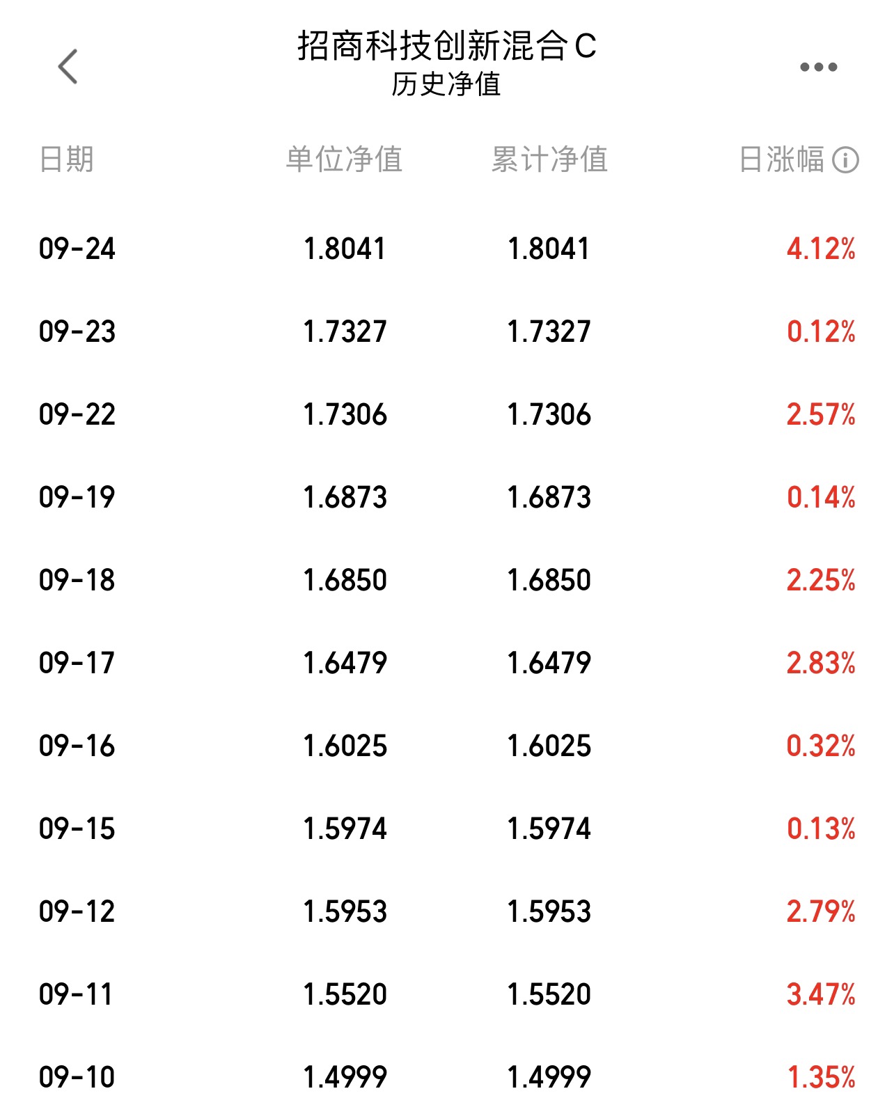招商科技创新昨天再度收红,大涨4.12%,已经实现了罕见的 11连涨,这波强度相当惊人。产品布局方向集中在半导体、AI芯片、算力、国产替代等高景气赛道,正是当下市场的主线。更难得的是,行情震荡时它依然能连收红,体现了基金经理对板块节奏的把握。近一年收益已超过112%,攻守两端表现都不俗。对我来说,这类基金既能捕捉科技浪潮的高弹性,又能通过均衡配置分散波动,适合用作长期配置的核心标的。