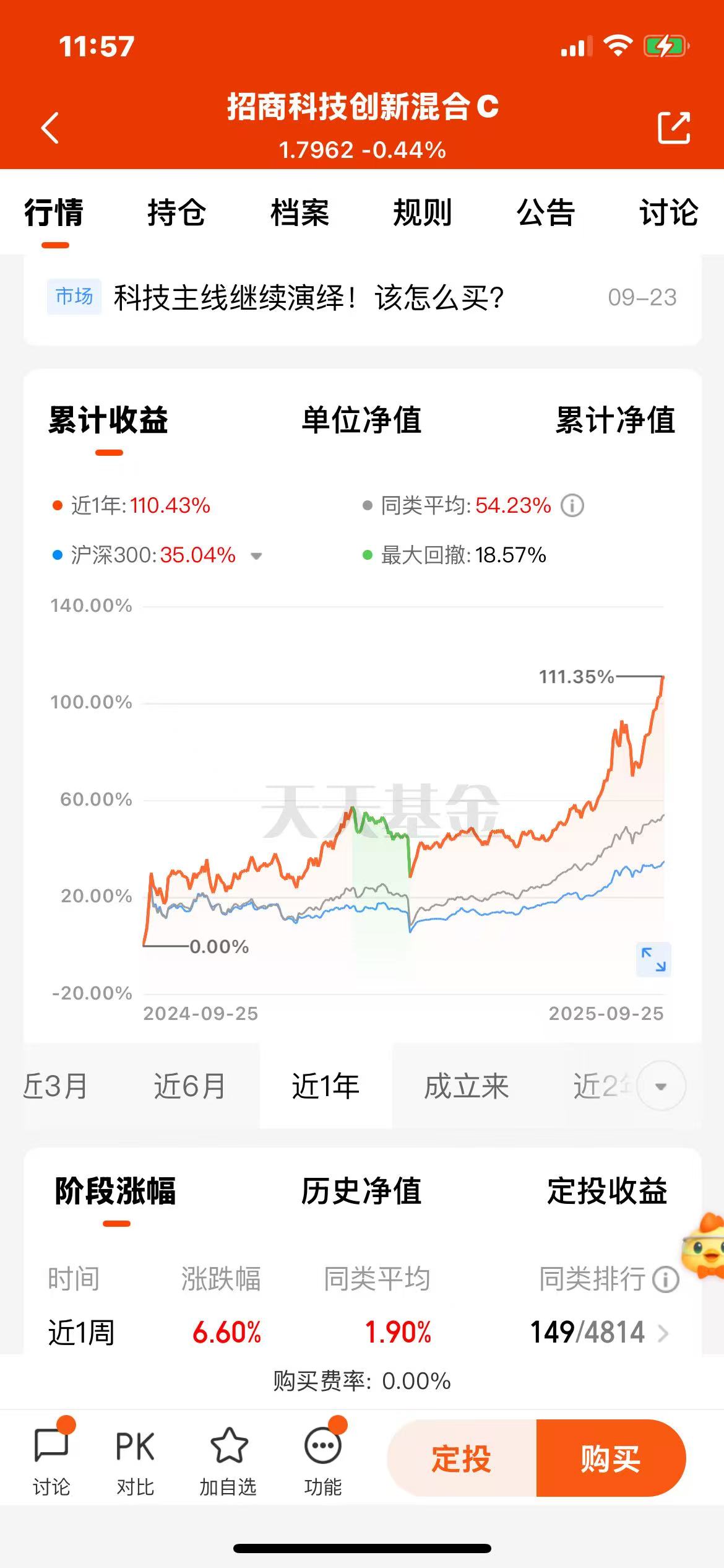 $招商科技创新混合C(OTCFUND|008656)$上涨6.6%