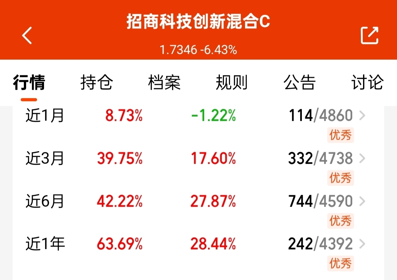 $招商科技创新混合C$ 近一个月涨幅8.73%,整体表现不错,希望继续加油,我会持续关注