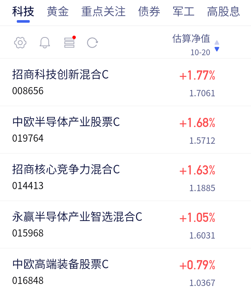 $招商科技创新混合C$ 今日估值上涨1.77%