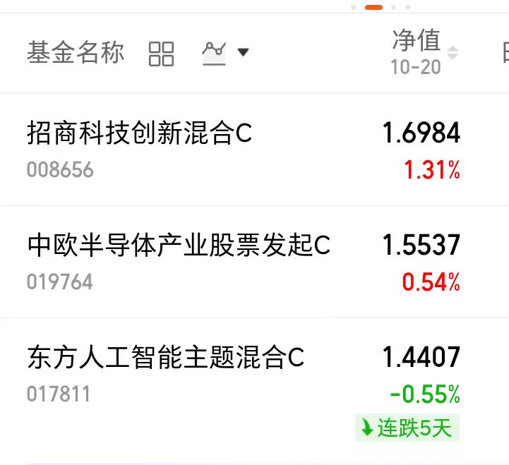 $招商科技创新混合C(OTCFUND|008656)$昨天反弹上涨1.31%,弹性大,涨幅可观。$中欧半导体产业股票发起C(OTCFUND|019764)$昨天上涨反弹0.54%